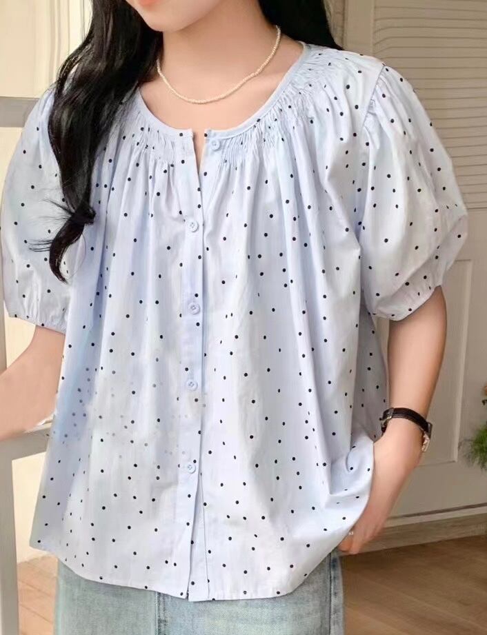 可愛らしいドット柄が魅力のシャツブラウスが登場しました!爽やかな印象を与える清涼感溢れるアイテムです。デイリーコーディネートに活躍すること間違いなしの一枚です。繊細なデザインとシルエットが女性らしさを引き立てます。程よい透け感が上品さを演出し、大人の女性にぴったりのアイテムです。