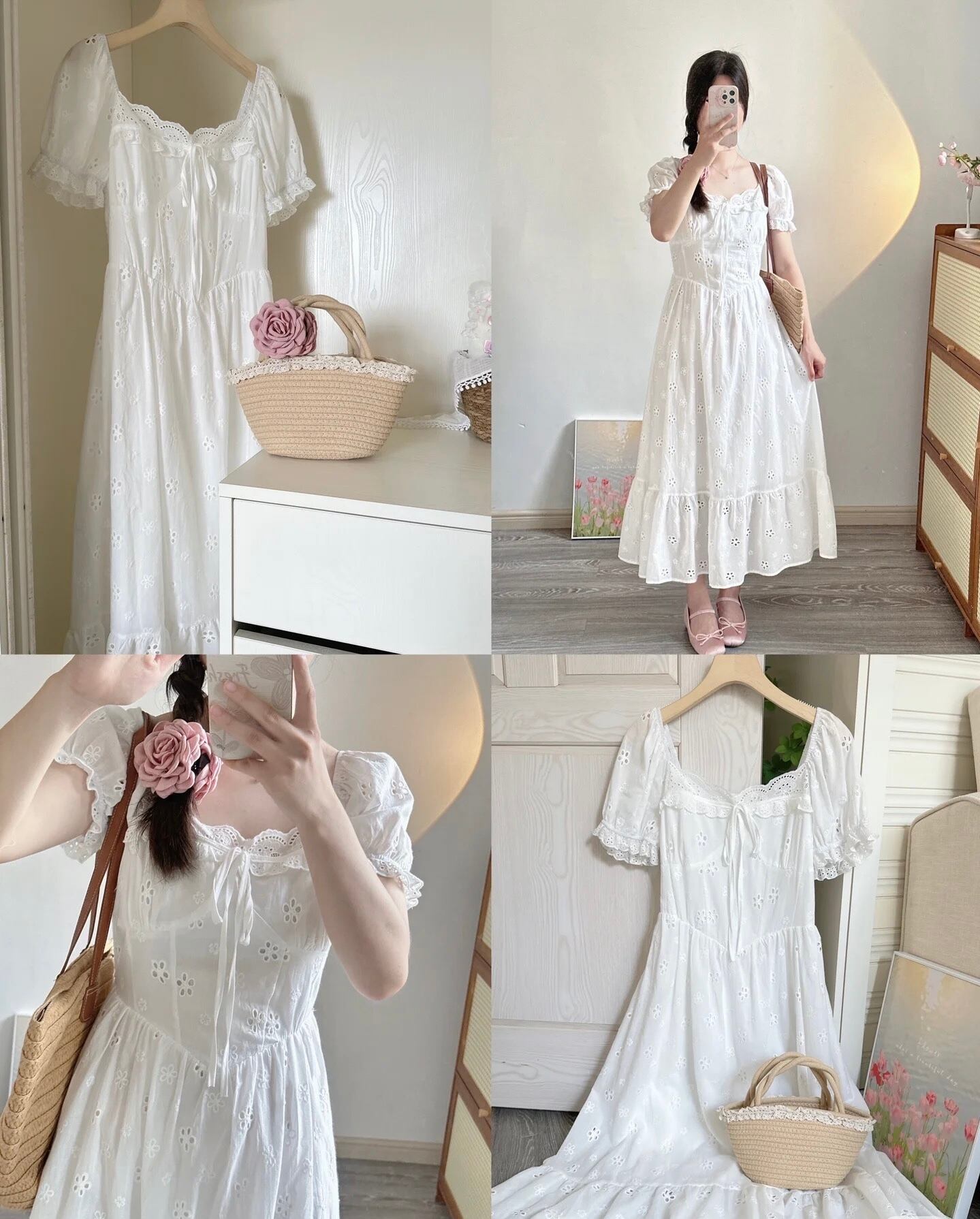 フレンチスタイルを演出する、上品な花柄レースワンピースが登場しました。胸元のリボンアクセントやスクエアネックが、女性らしい優雅さを引き立てます。華やかな花柄が気品漂う装いを演出し、特別な日のお出かけやパーティーにぴったりです。