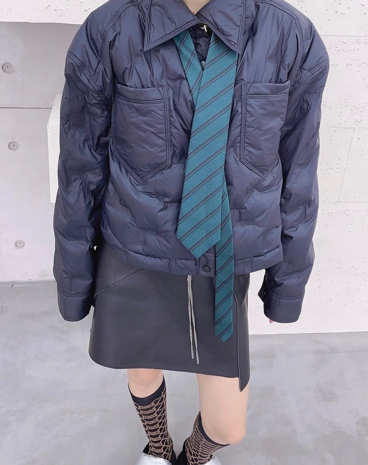 キルティングコットンジャケットは、モダンでスタイリッシュなデザインが特徴の一枚です。キルティングの縫製が施されたコットン生地は、暖かくて軽い着心地を提供してくれます。さらに、ネクタイ付きという細部までこだわりが詰まったアイテムです。